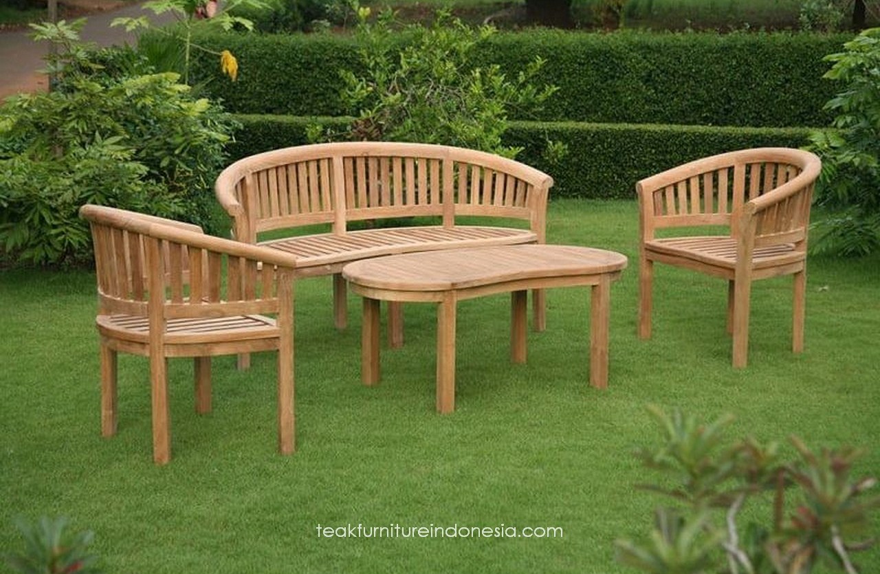 Luxury Teak Banana Bench and Coffee Table Conversation Set – Investment Quality Outdoor Furniture with Distinctive Curved Bench Design for Upscale Patio Entertainment Areas