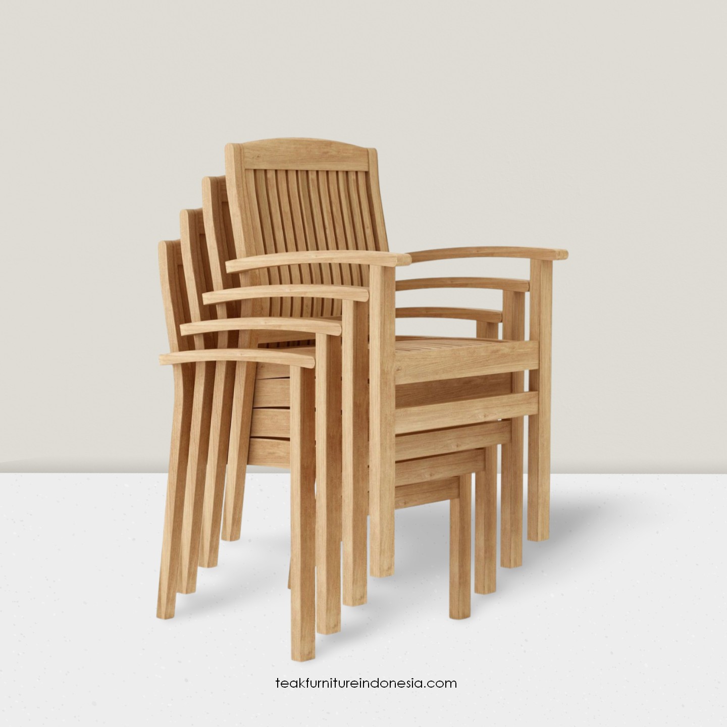 Foldable Teak Garden Stacking Chair with Armrests – Compact Storage Design for Small Balconies, Terraces, and Outdoor Spaces