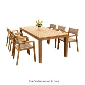 Renowned for its exceptional durability and resistance to the elements, teak wood stands out as the ideal choice for outdoor furniture. Teak stands out from other woods by naturally resisting moisture, insects, and the inevitable wear and tear of outdoor conditions, ensuring it won’t warp, crack, or fade over time. Investing in a teak outdoor dining set means acquiring a stunning piece of furniture that promises durability for years to come. No matter if you’re facing high humidity, blazing sun, or fluctuating temperatures, teak rises to the occasion, preserving its durability and allure in every environment.