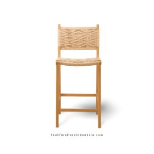 The Luxury Teak and Woven Rattan Bar Chair is an Elegant Combination of Solid Teak Wood and Handwoven Rattan, and it is Ideal for High-End Patio Bars, Indoor Kitchens, and Coastal Home Decor